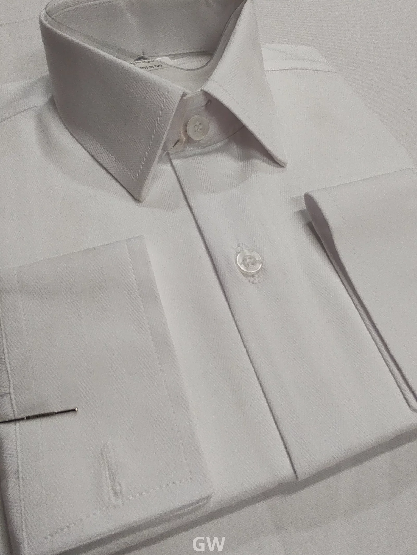 Collar: A traditional pointed collar, providing a formal and neat appearance, suitable for a tie or bow tie if required.