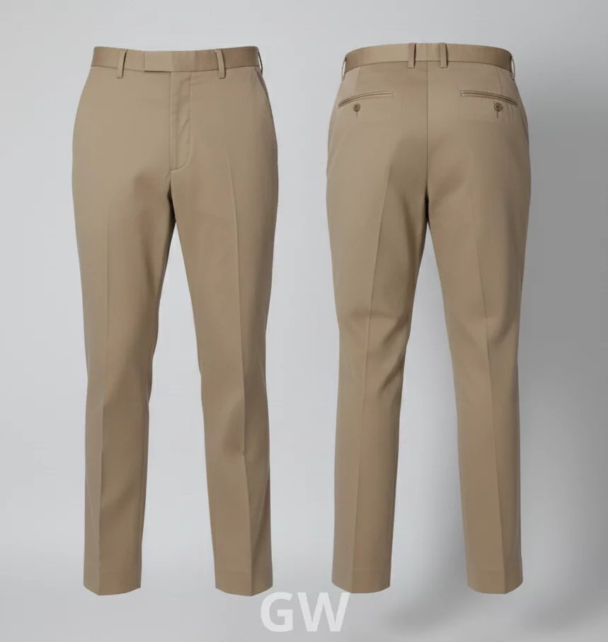 Pleats: No visible pleats on the front (flat-front design), which gives it a modern and clean appearance.