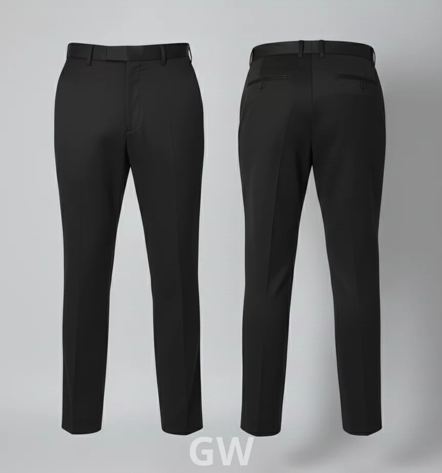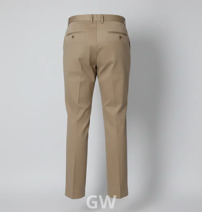 Back Pockets: Features two back welt pockets (or jetted pockets), usually with button closures, adding a formal and functional touch.