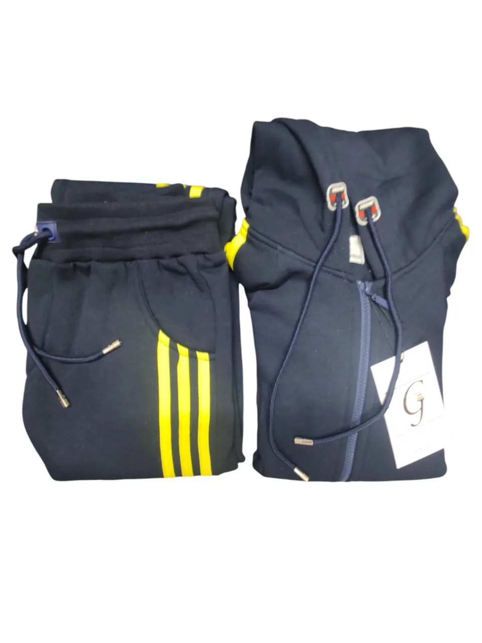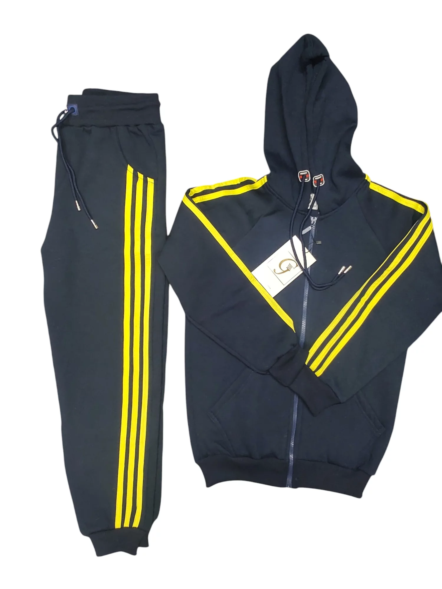 Stripes: Adorned with two vibrant yellow stripes along the sides, perfectly matching the sweatshirt's design.