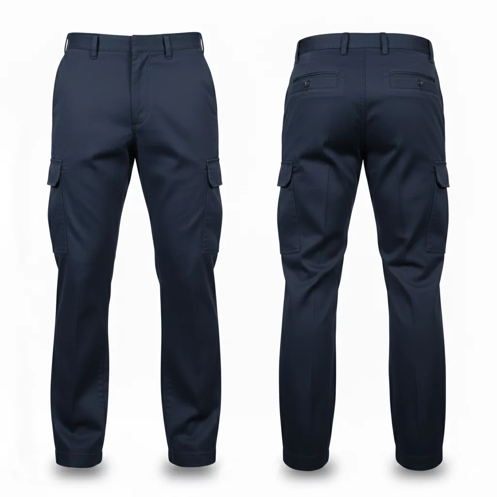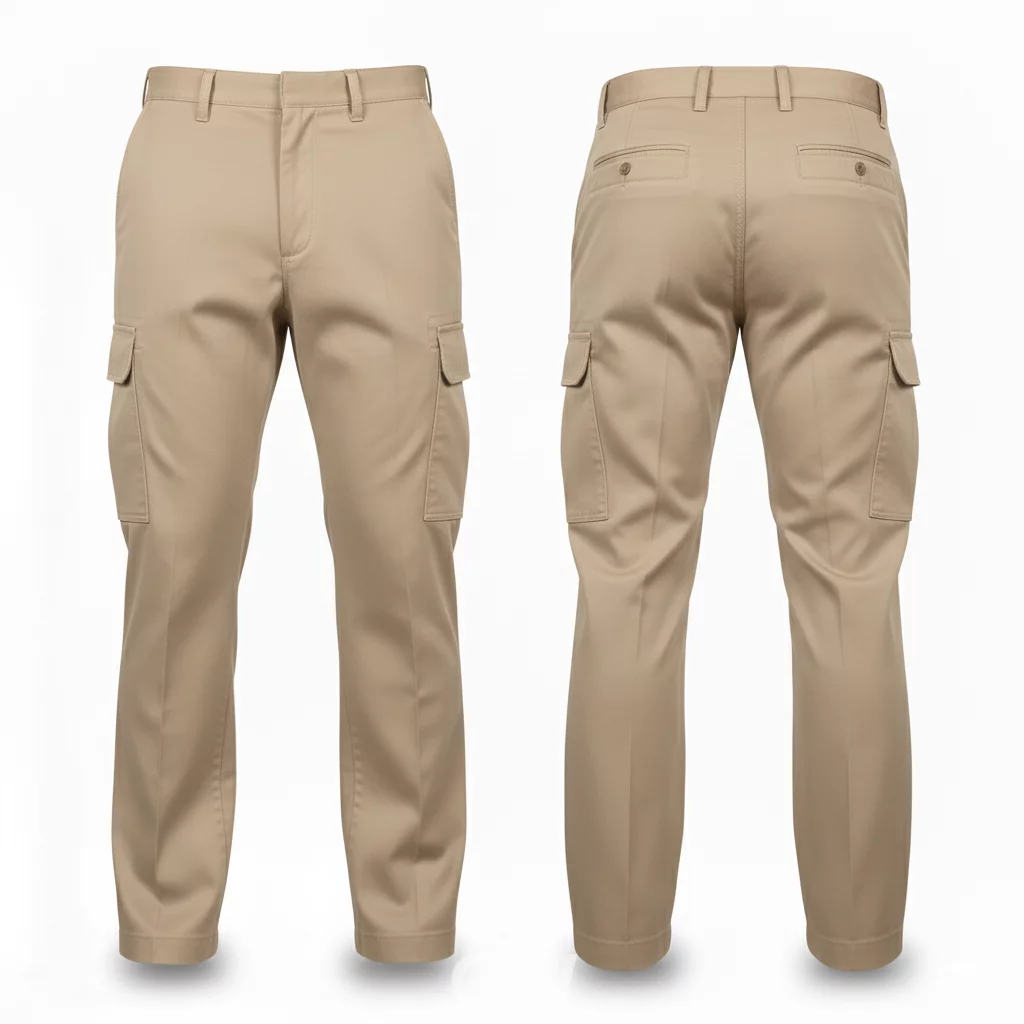 Cargo Pockets: The side cargo pockets are also visible from the back, highlighting the utilitarian nature of the trousers.