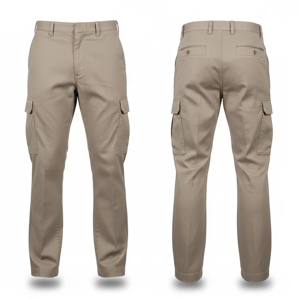 In summary, these beige gabardine cargo trousers are a versatile piece of clothing, combining durability, comfort, and functionality thanks to their large pockets, making them perfect for daily and outdoor activities