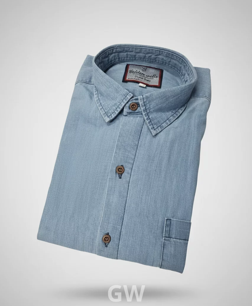 قميص جينز (دينم) أزرق فاتح بأكمام طويلة من يونيفورم جي دبليو.