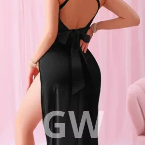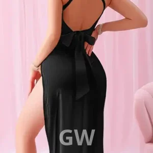 فستان أنيق من الدانتيل الأسود بدون أكمام