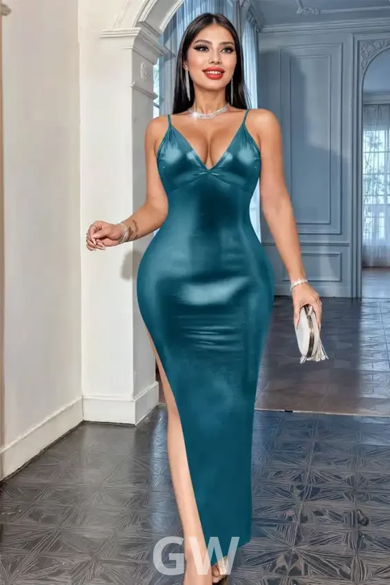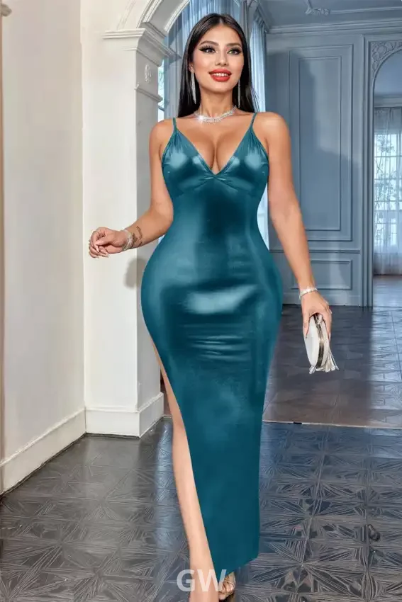 فستان سهرة أنيق من الساتان بدون أكمام