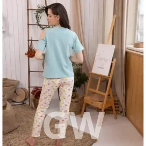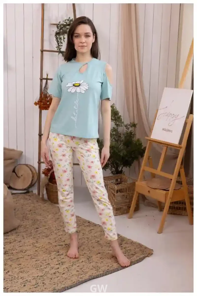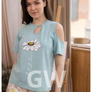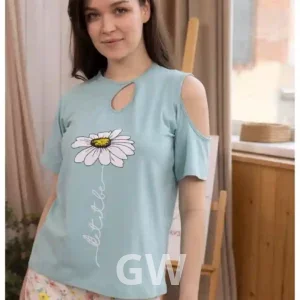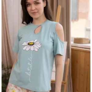 طقم بيجامة مزين بالزهور وأكتاف مكشوفة