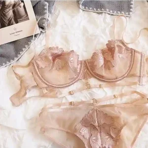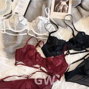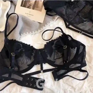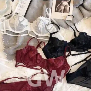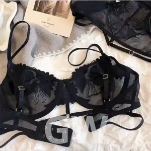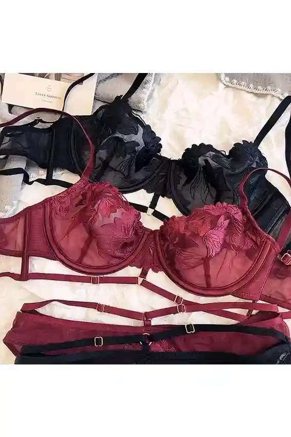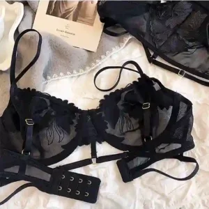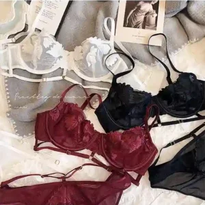 مجموعة الملابس الداخلية الشفافة المزينة بالدانتيل الزهري
