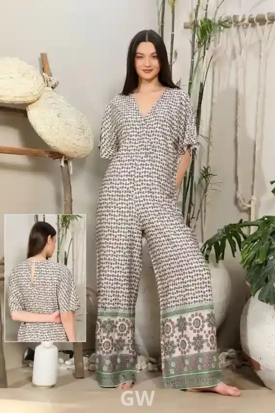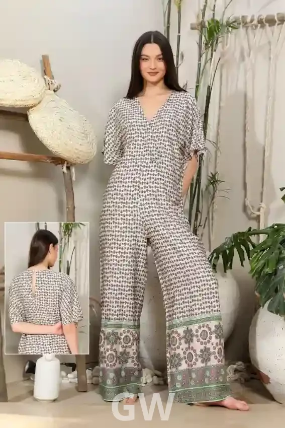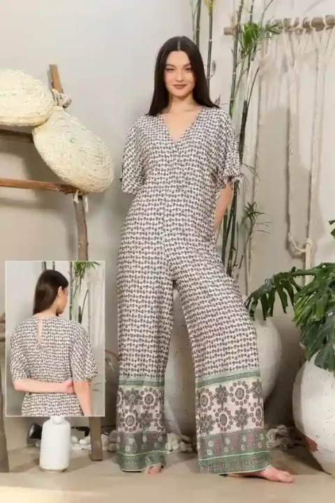 جمبسوت بطبعة زهور وأكمام قصيرة