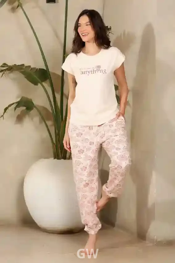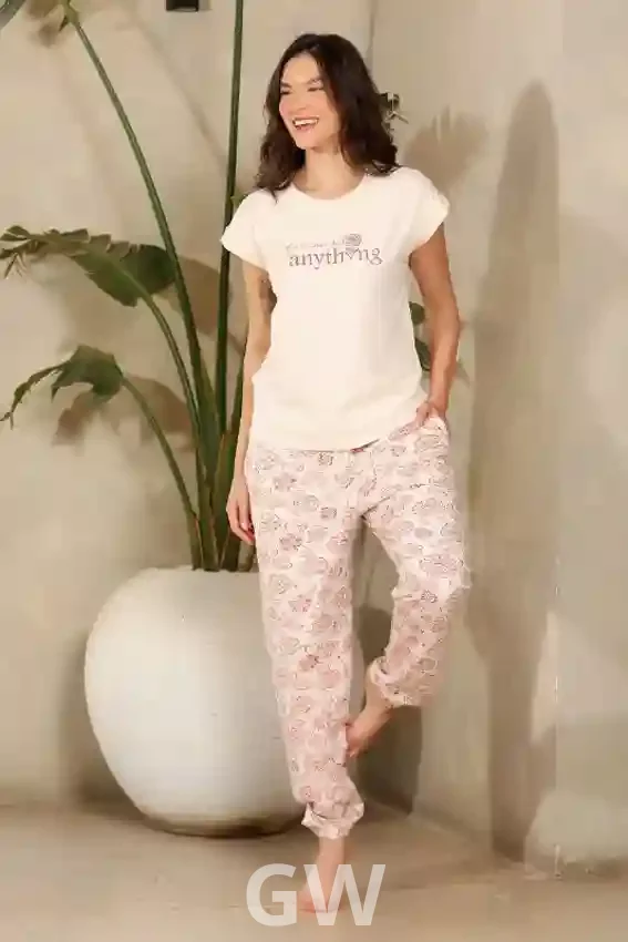 طقم بيجامة بأكمام قصيرة بطبعة زهور