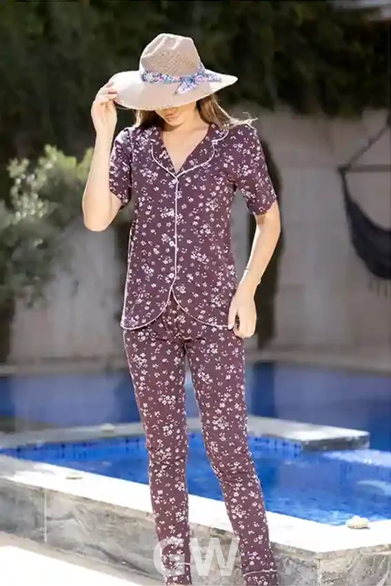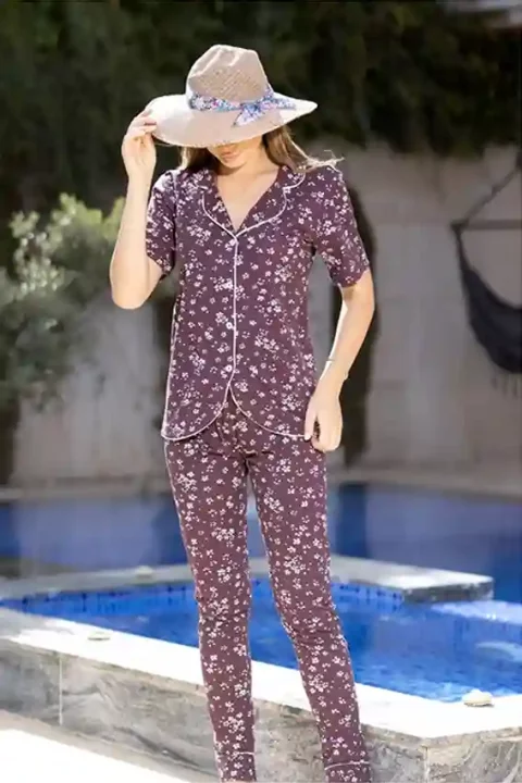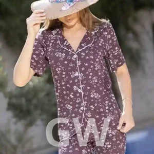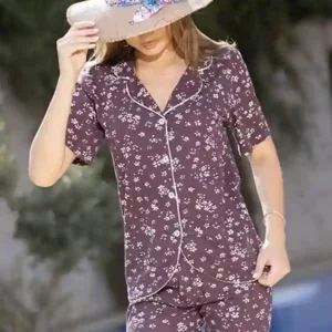 طقم بيجامة بأكمام قصيرة مزين بالزهور