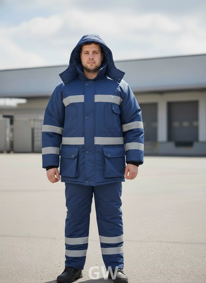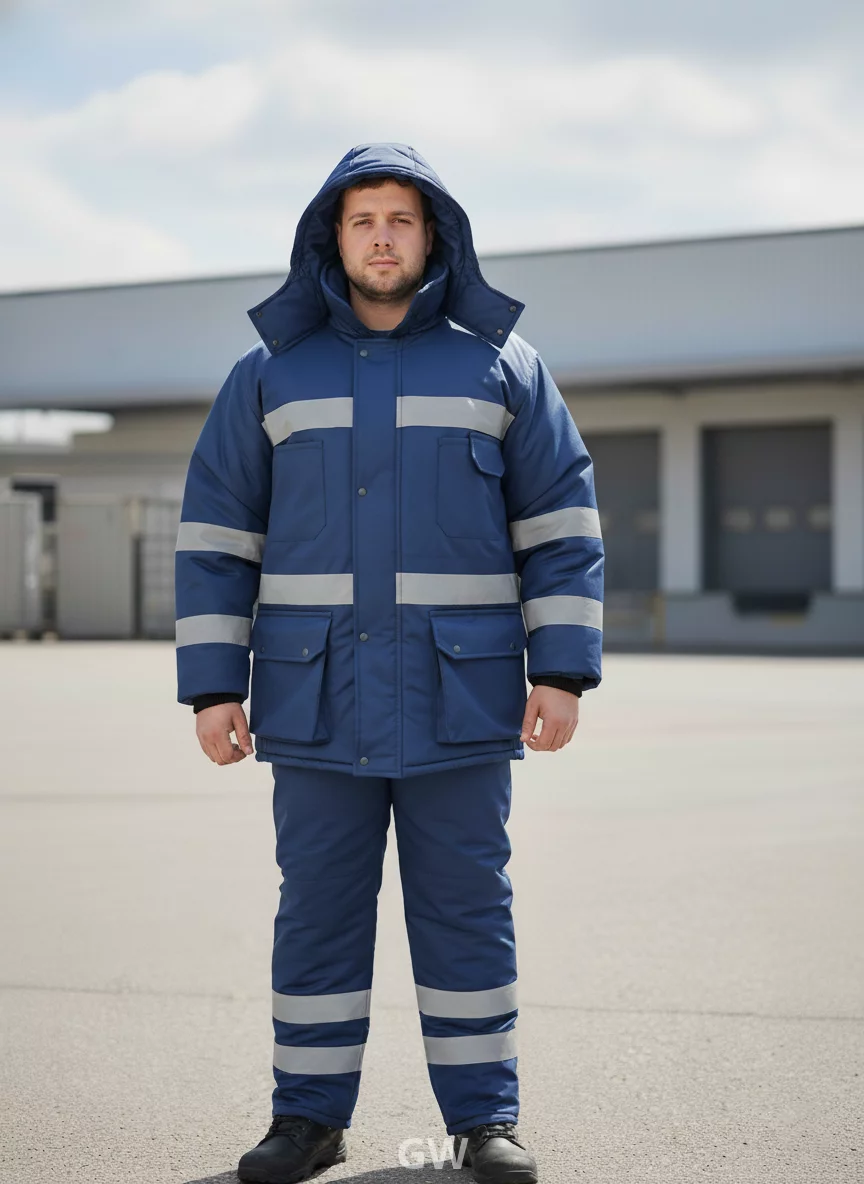 صُممت بدلة التجميد المكونة من ثلاث قطع - التي تتكون من سترة مقاومة للتجمد وسروال معزول وغطاء للرأس - لحماية العمال من ظروف البرد القارس في المبردات ومستودعات التخزين البارد وبيئات التجميد الخارجية. هذه البدلات ضرورية للحفاظ على دفء الجسم