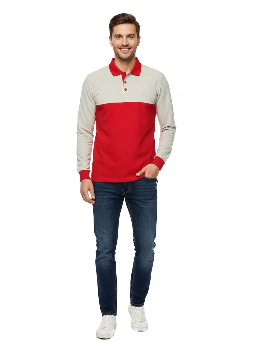 النمط العام: يتميز هذا التيشرت بمزيج كلاسيكي وجذاب من اللونين الرمادي الفاتح والأحمر. تصميم تقسيم الألوان يجعله ملفتًا للنظر وعصريًا. الأكمام الطويلة تجعله خيارًا جيدًا للأجواء الباردة أو كقطعة عملية وأنيقة للاستخدام اليومي.