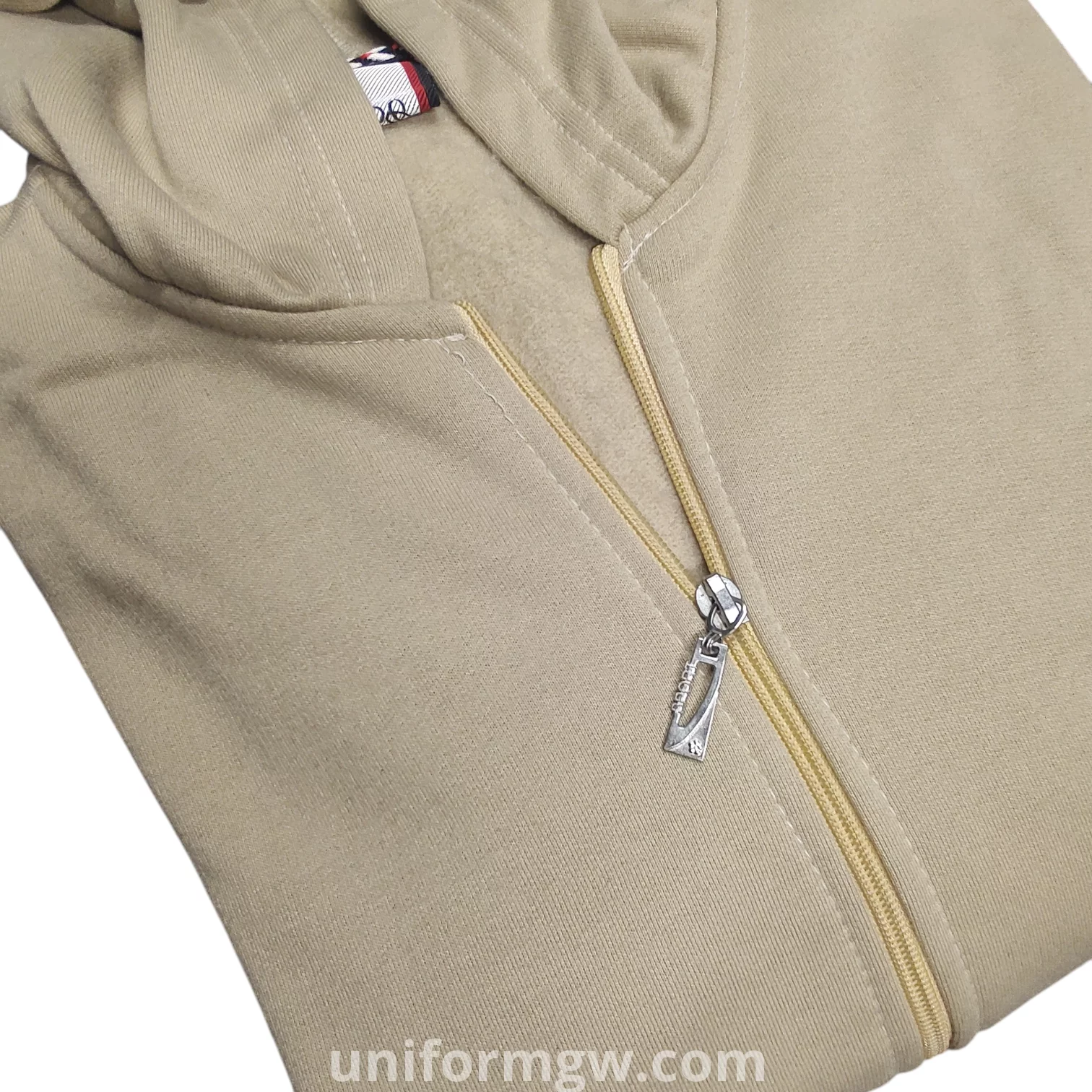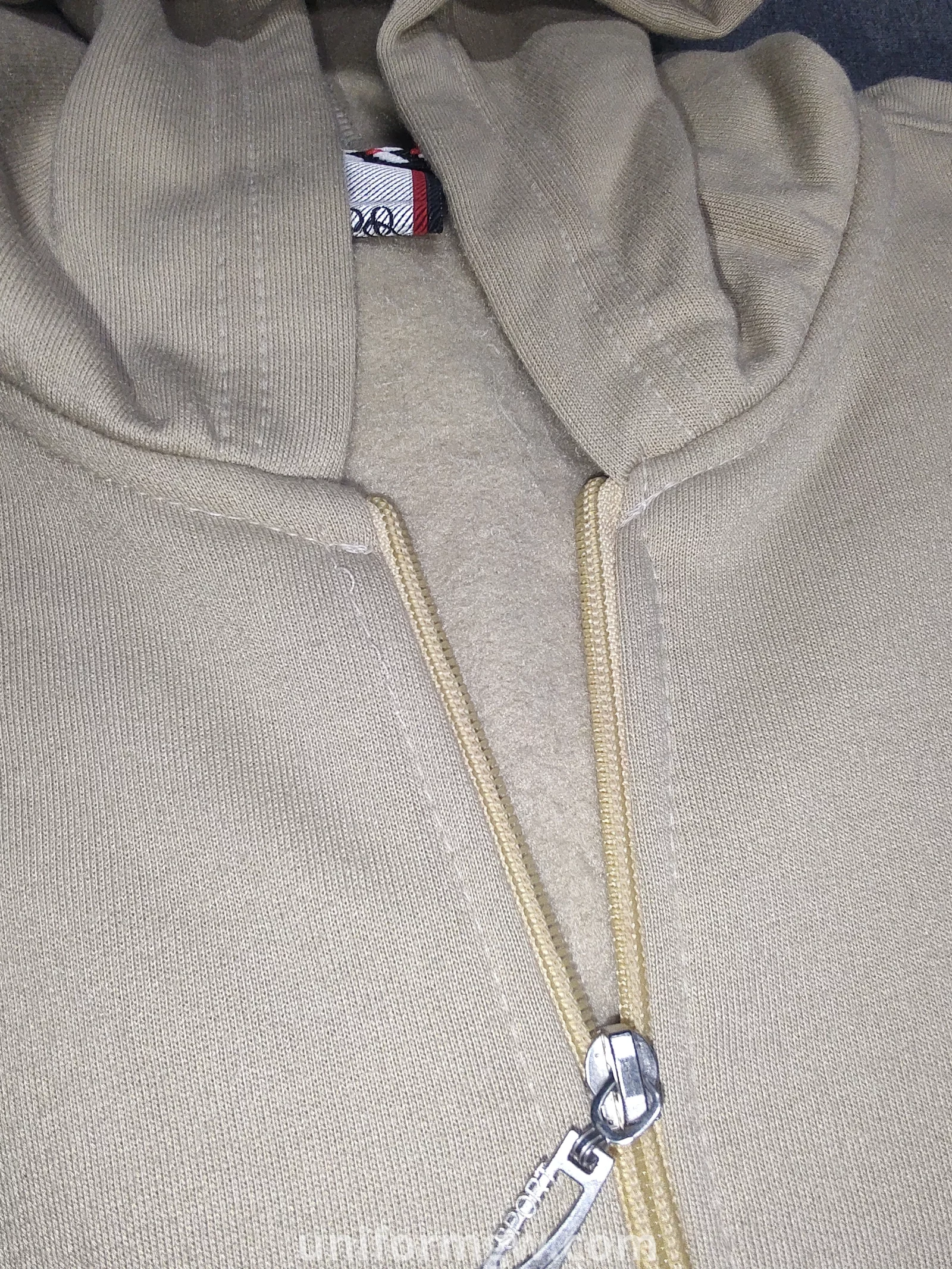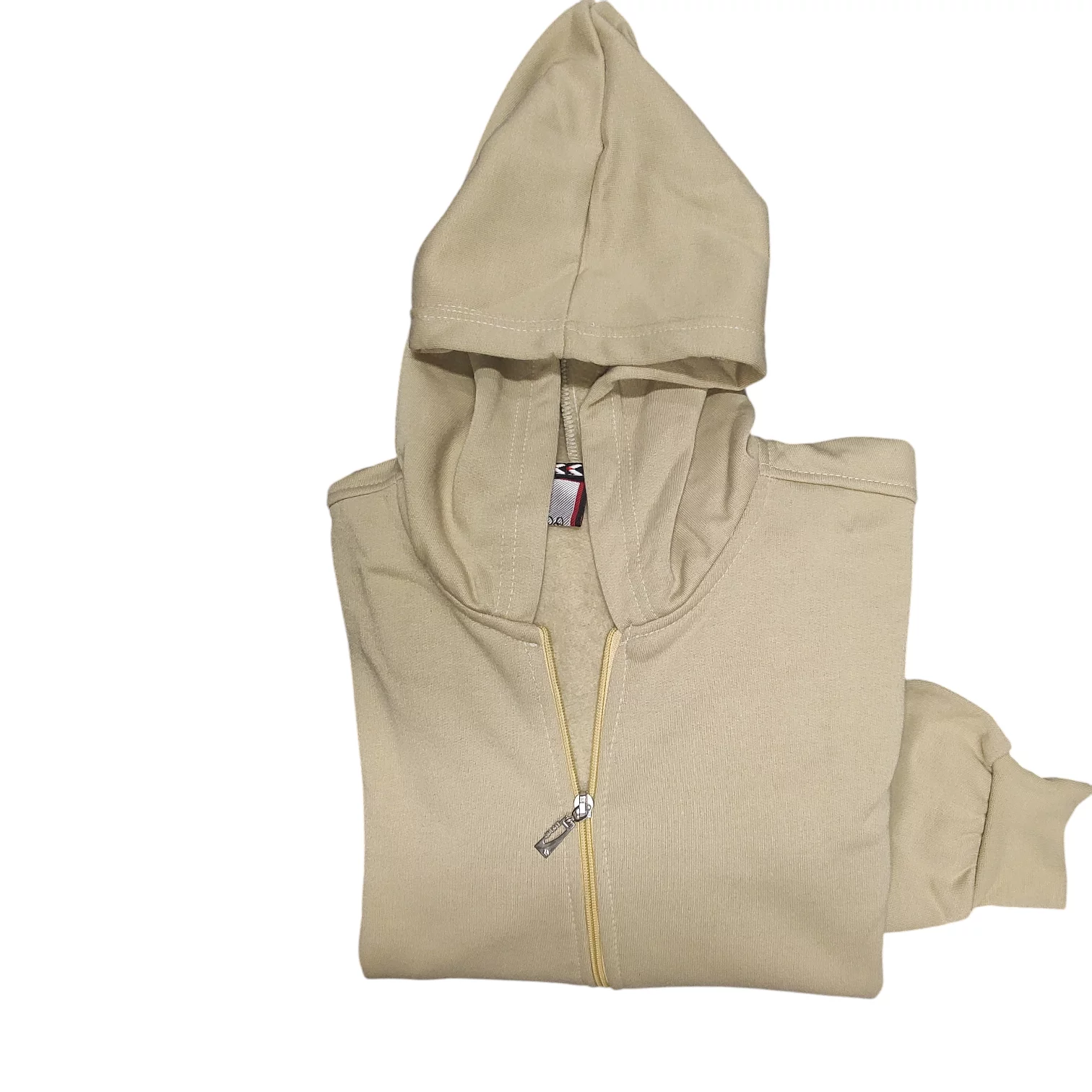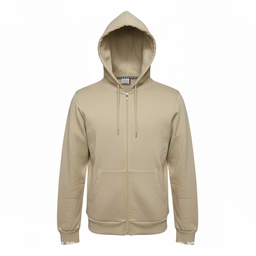 الخامة الخارجية للسويتشيرت من قماش الميلتون ، تمنح شعورًا فائق النعومة والدفء. يحتوي السويتشيرت على غطاء رأس ، ومزود برباطين  قابلين للتعديل. يأتي بسحاب أمامي كامل ، مما يسهل ارتداءه وخلعه ويسمح بتعديل مستوى التدفئة. يشتمل على جيبين جانبيين على شكل "كانجارو" في الأمام، عملية لتدفئة اليدين أو تخزين الأغراض الصغيرة. الأكمام الطويلة والحافة السفلية للسويتشيرت تنتهي بأساور مضلعة لتوفير ملاءمة محكمة وحبس الدفء. التصميم كاجوال وعملي، ومناسب للارتداء اليومي.