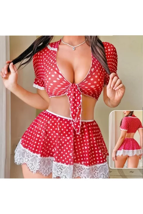 طقم بولكا دوت بأكمام قصيرة