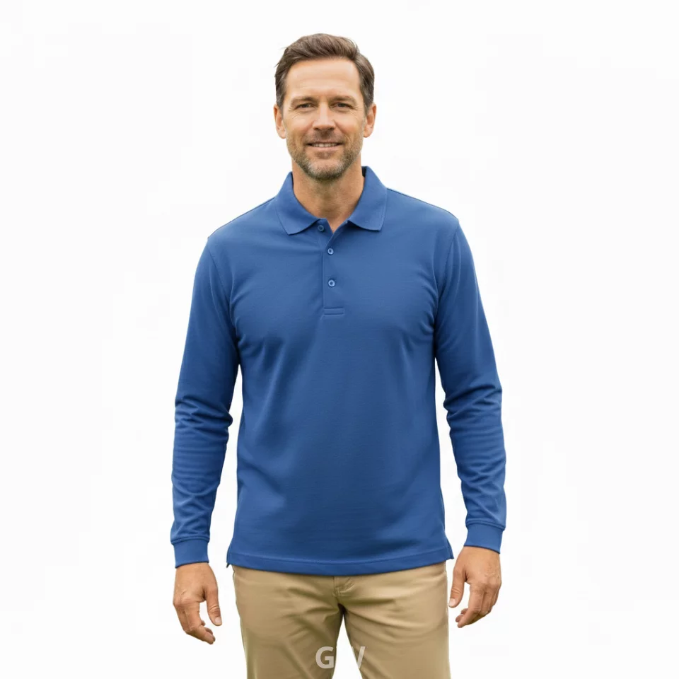 تيشيرت بولو أنيق ومريح بأكمام طويلة، بلون أزرق ملكي جذاب. يتميز بياقة كلاسيكية مضلعة وأزرار أمامية متناسقة، مما يضفي عليه لمسة من الرقي. مصنوع من قماش بيكيه عالي الجودة يوفر الدفء والراحة مع التهوية المثالية، مما يجعله مثاليًا للارتداء في الأيام الباردة أو لإطلالة أنيقة وعصرية.