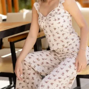 جمبسوت أنيق بدون أكمام مزين بالزهور