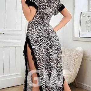 فستان أنيق بطبعة جلد النمر بأكمام قصيرة