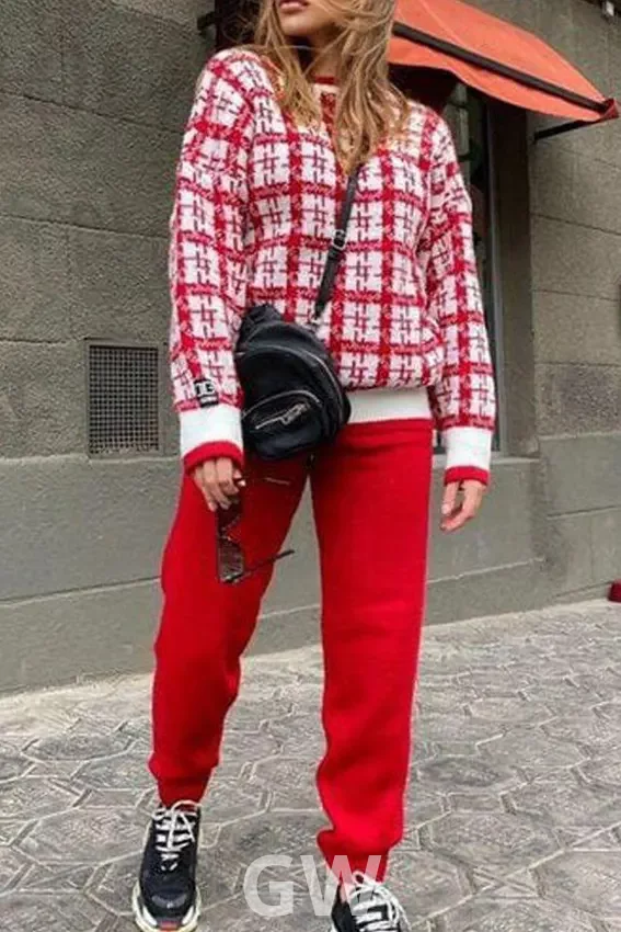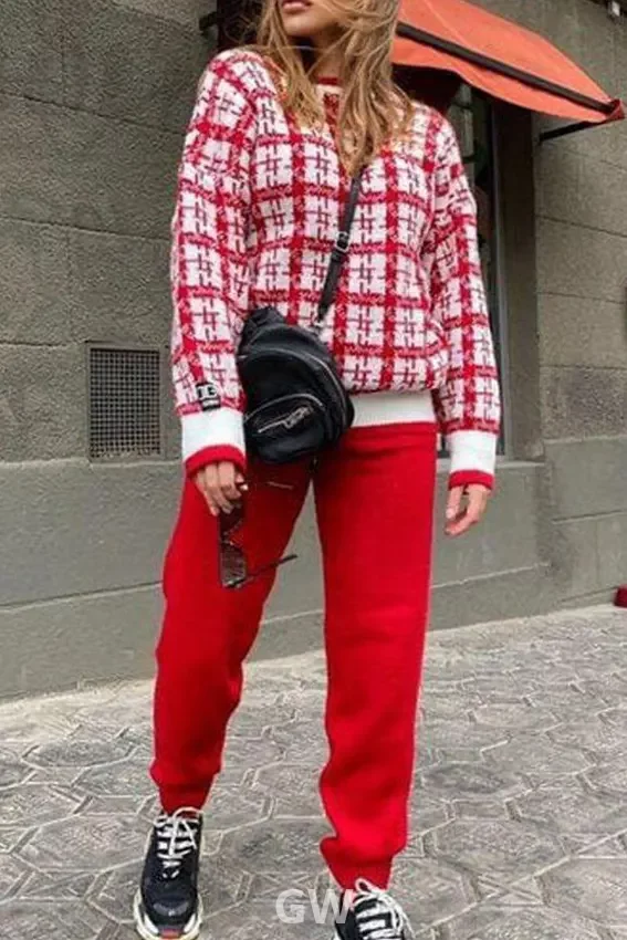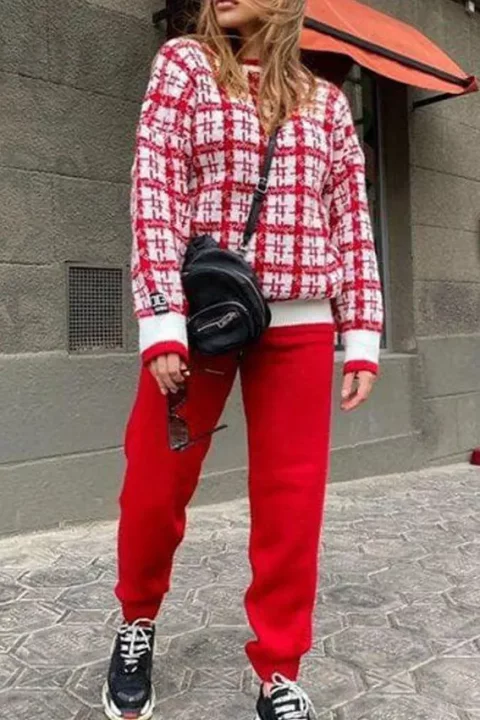 طقم عصري بأكمام طويلة ومنقوش