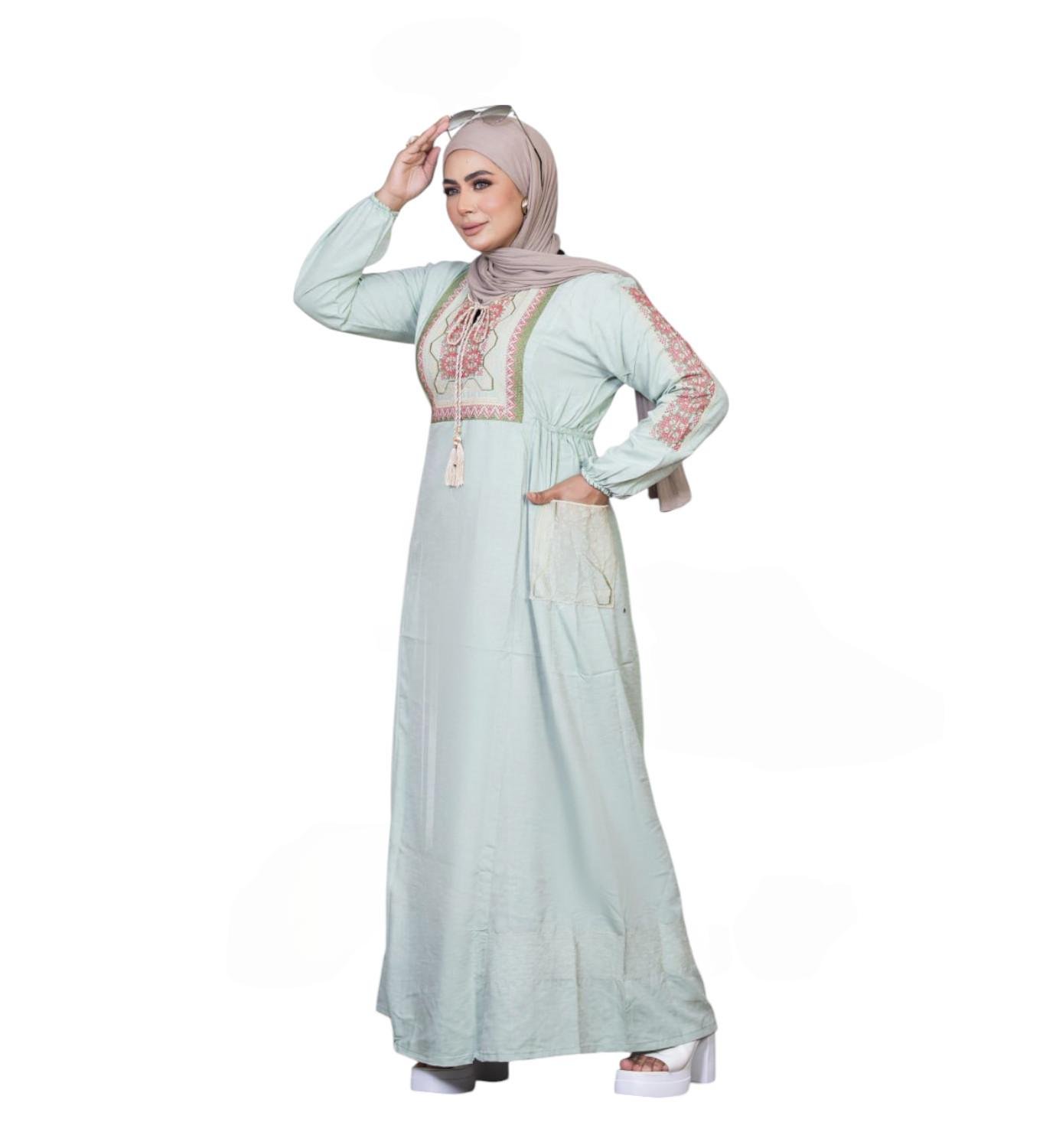 الأناقة مع عبايتنا ذات التصميم الجميل، وهي مزيج متناغم من التقاليد والرقي والخياطة العصرية. مثالية لأي مناسبة - سواء كانت تجمعاً رسمياً أو نزهة غير رسمية أو لحظة تأمل هادئة - هذه العباءة إضافة أساسية لكل خزانة ملابس.