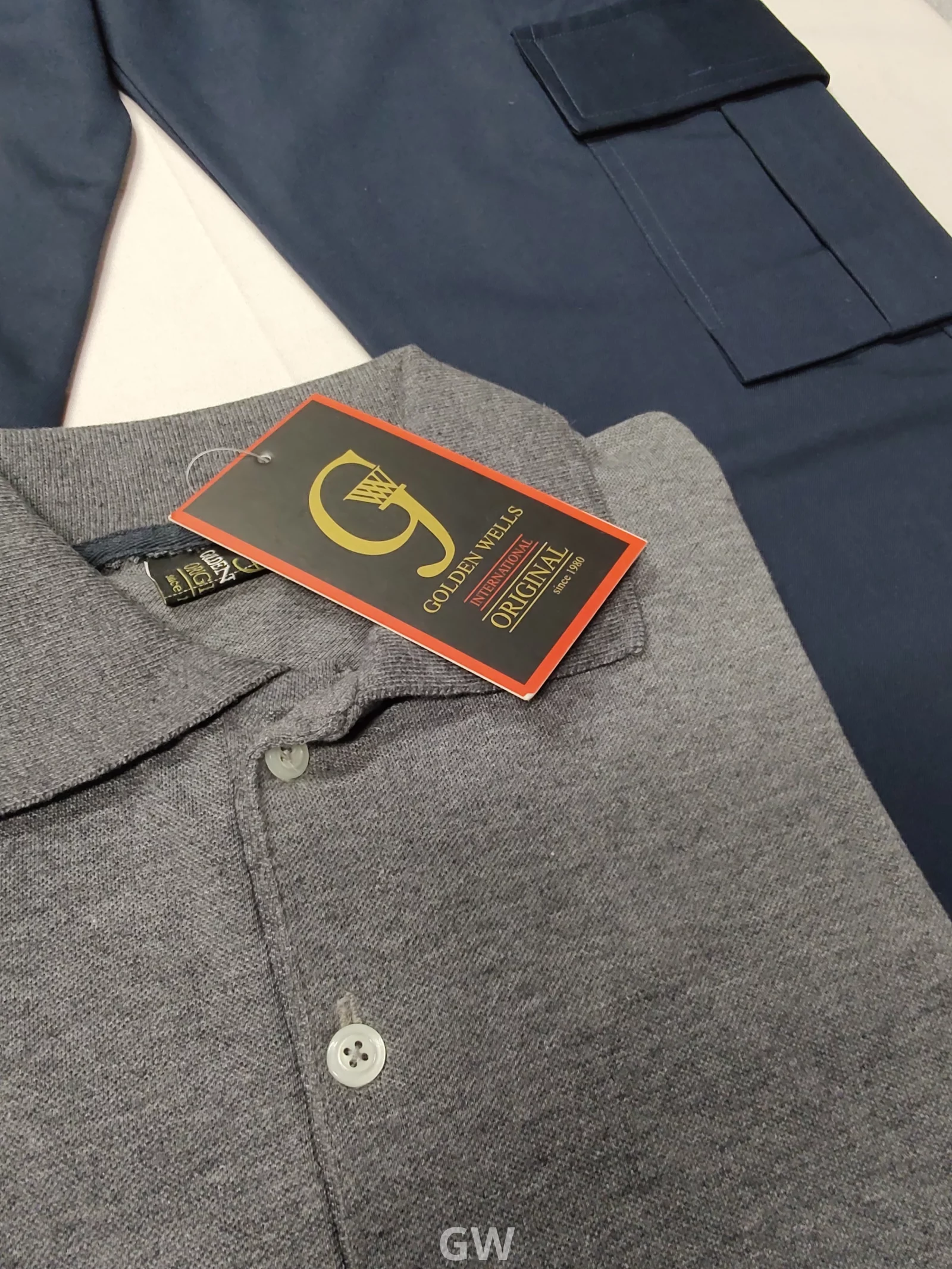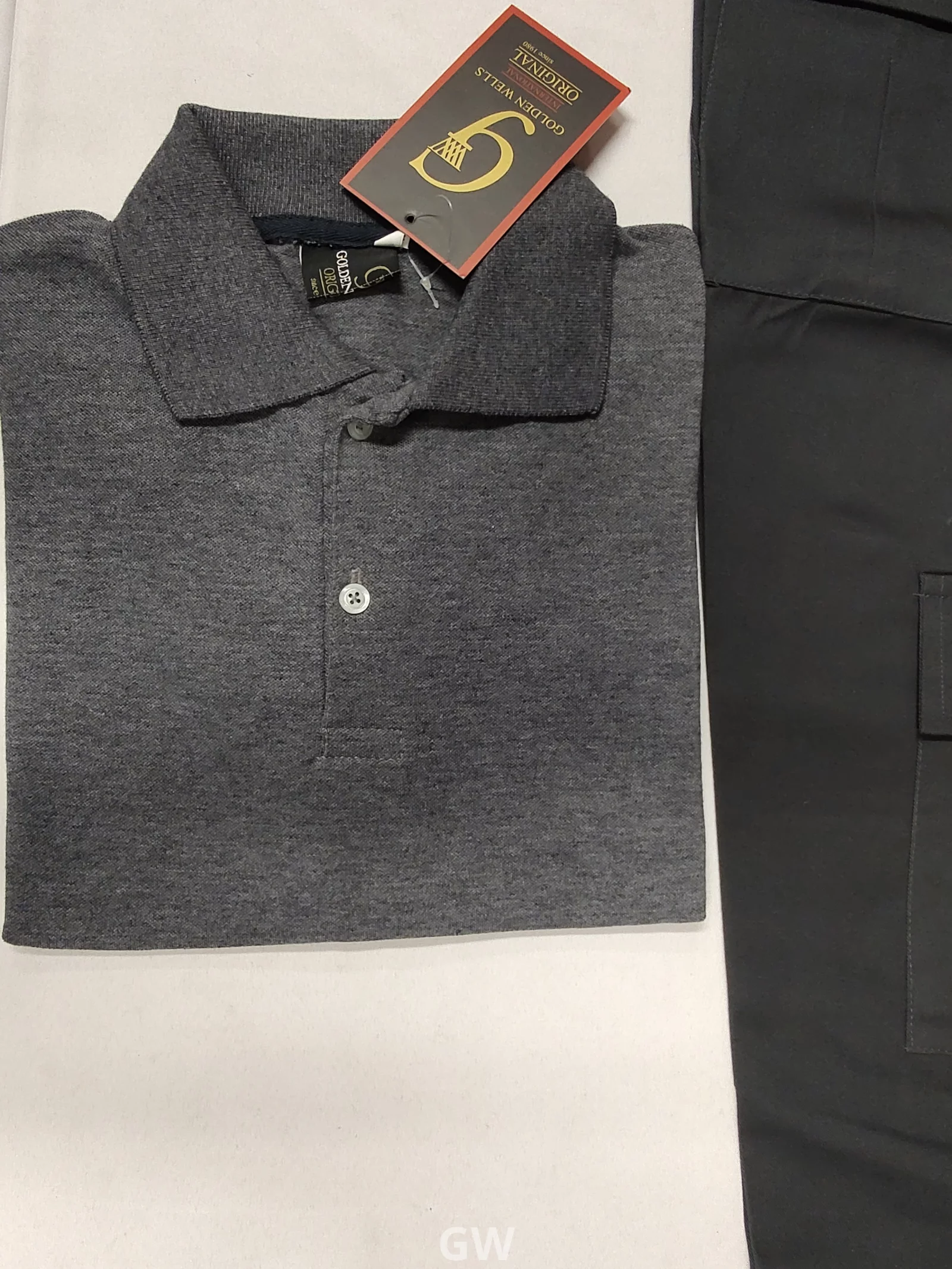 Collar and Sleeves: Features a classic "polo" collar in Dark gray , creating an elegant contrast with the grey body. There are also matching Dark gray ribbed cuffs on the sleeves.