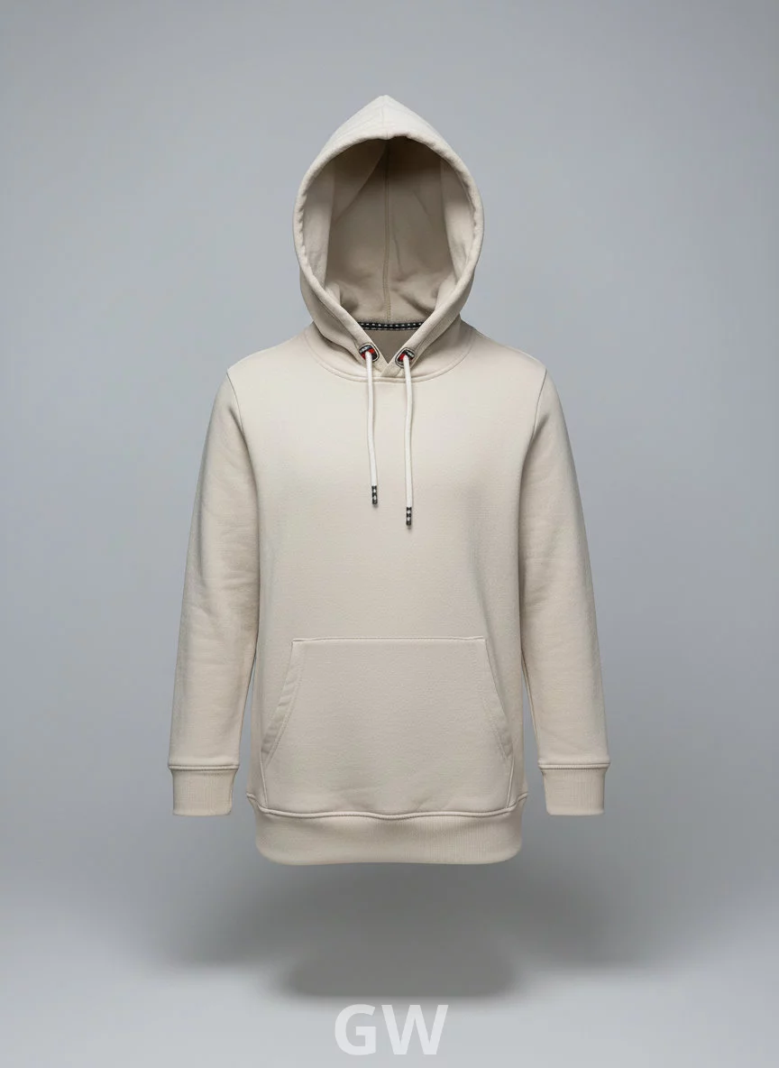 A classic and comfortable Melton hoodie in a light beige color (off-white/cream), suitable for daily wear for youth and children, and potentially for school wear if regulations permit. The hoodie is made from soft and warm Melton fabric, making it ideal for colder days and providing a cozy feel.