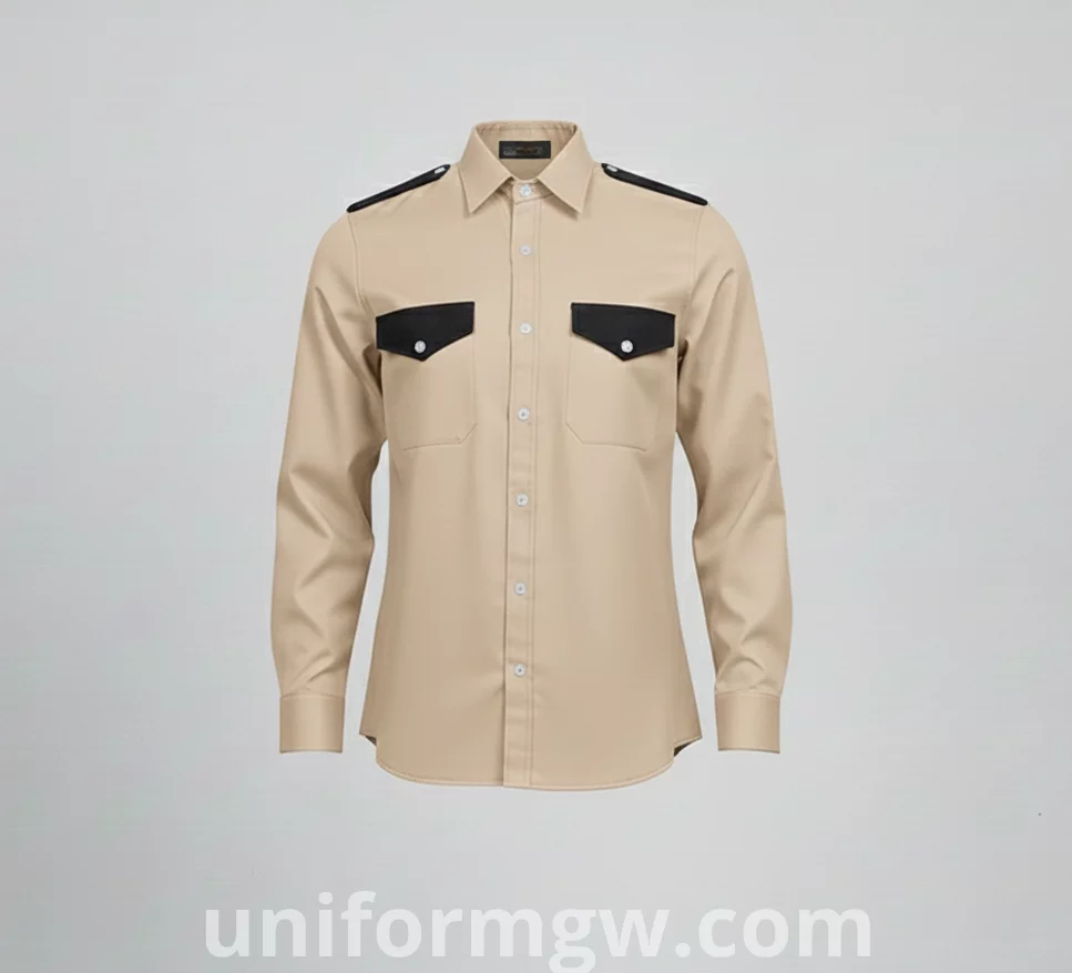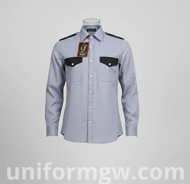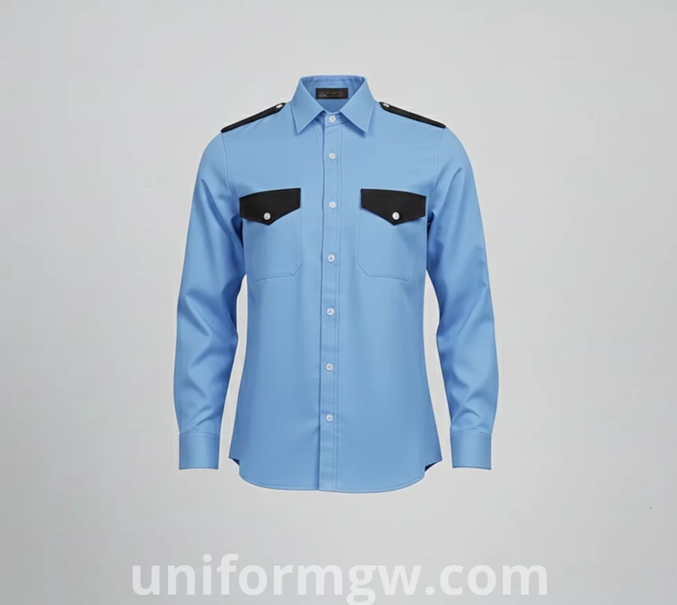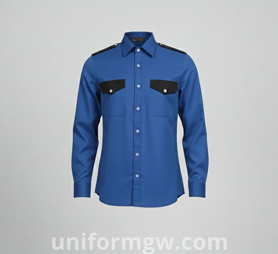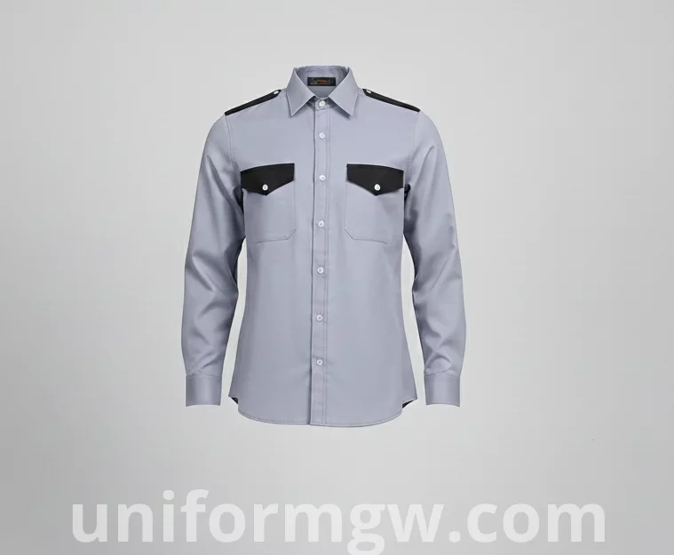 Overall Design: A formal dress shirt or a uniform shirt with a full button-up front.