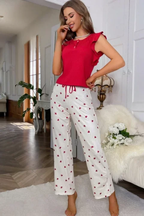 Stylish Ruffle Sleeveless Top and Heart Pants