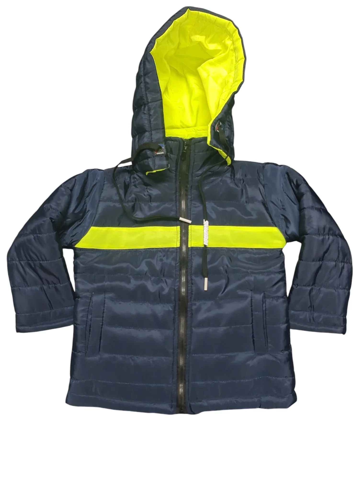 Modern Design Details: Features a wide horizontal phosphorescent stripe on the front, offering high visibility in low light conditions (especially in early mornings or evenings), and adding a modern and attractive touch to the jacket. The back comes in a solid dark navy blue, providing an elegant and balanced appearance.